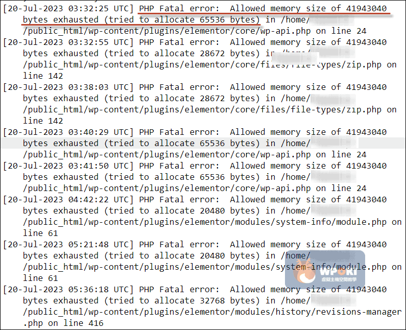 請查看 error_log 中的「Allowed memory size」及「Tried to allocate」的總和,以評估需要設定的記憶體值。