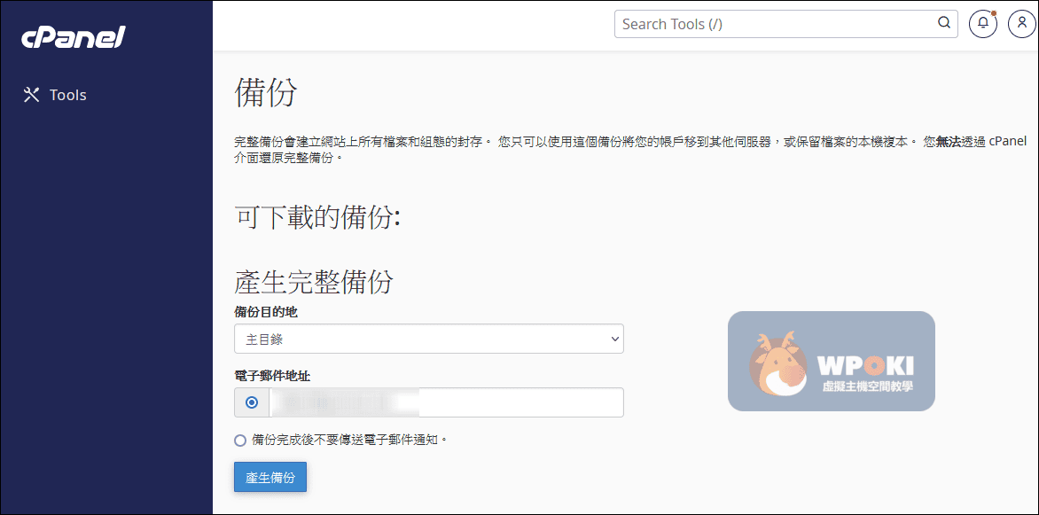 cPanel 備份功能 2:帳戶備份 (Account Backup)