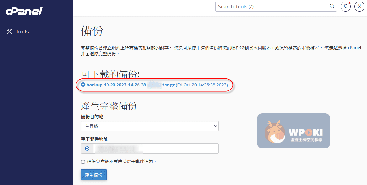 cPanel 備份功能 1:完整備份 (Full Backup)