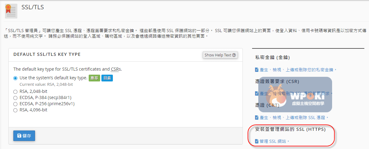 點選:安裝並管理網站的SSL(HTTPS)即可進到下圖畫面。
