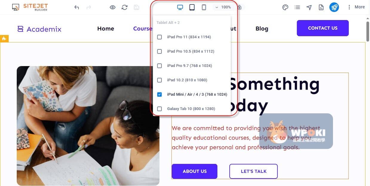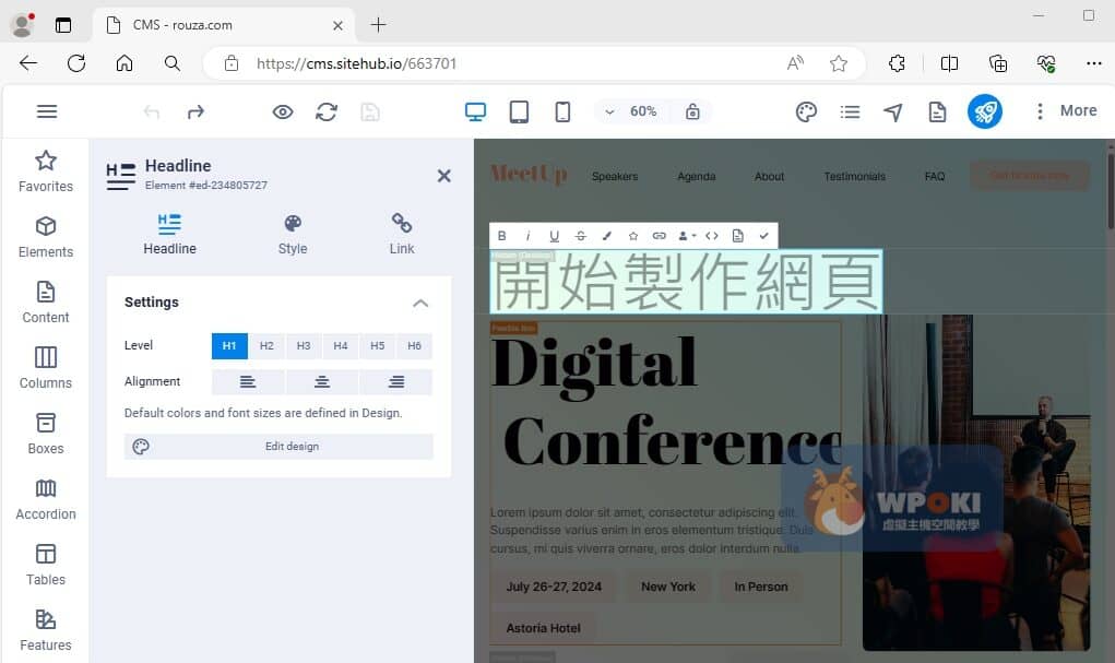 步驟3.點選喜歡的風格即跳轉到Sitejet Builder的編輯頁面,畫面上選點2下後均可以編輯。