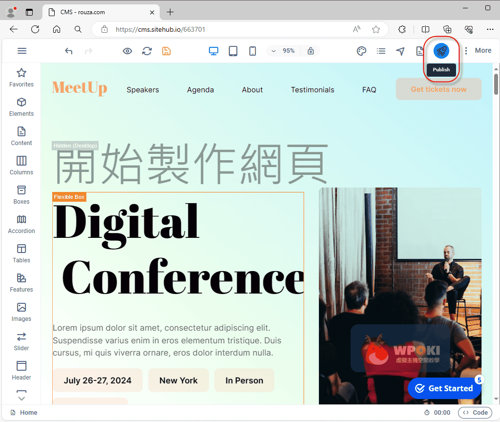 步驟5.編輯完成後,點選紅框(Publish)→即會發佈網頁