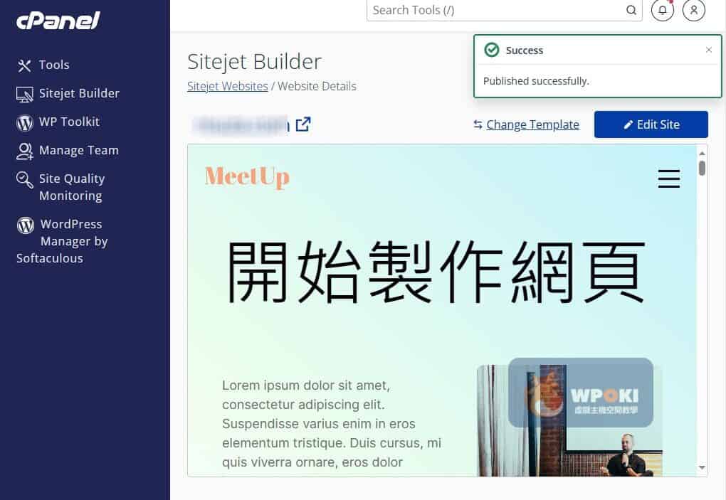 - Sitejet Builder包含在cPanel控制台裡的功能,無需加購申請(完全免費)