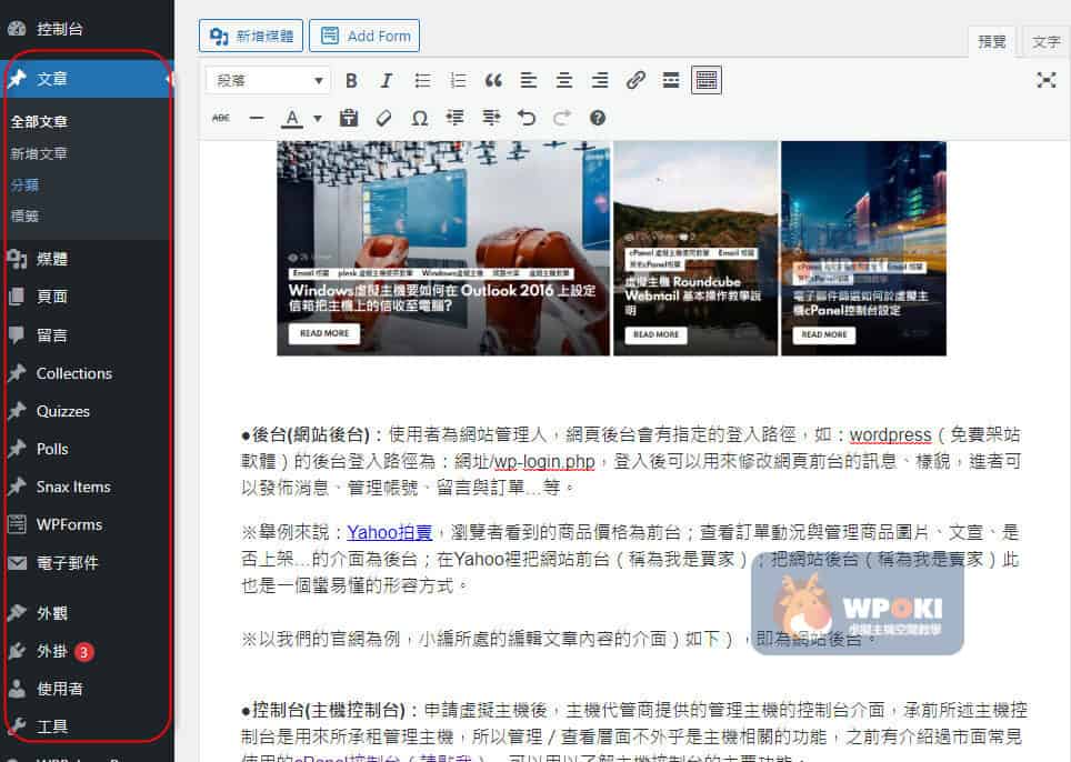 這是網站呈現在訪客眼前的畫面,例如您目前正在瀏覽的這篇文章,網站上的 Logo、分類、文章清單等都是「前台」內容。
