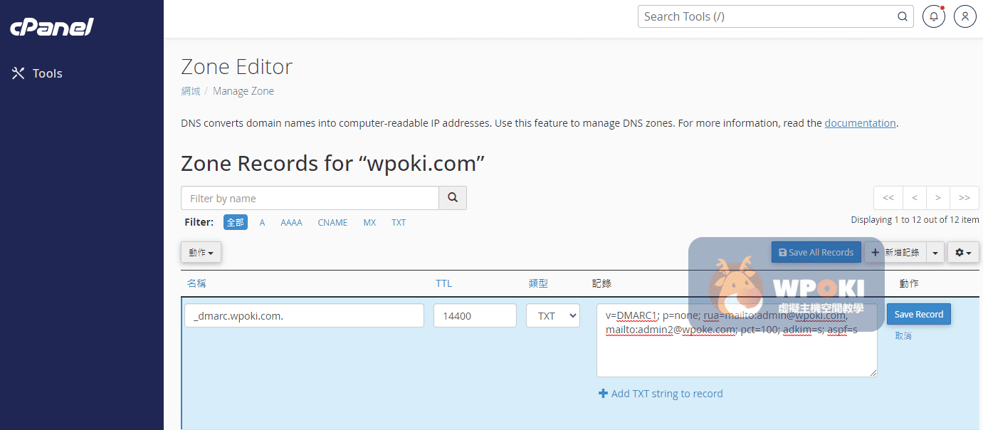 6.2. 在 cPanel DNS Zone 設定 DMARC