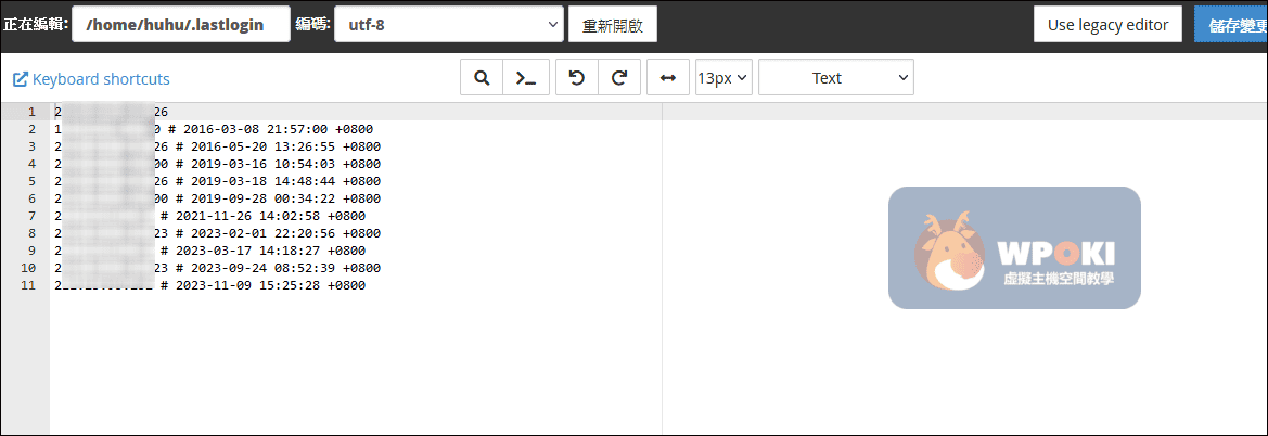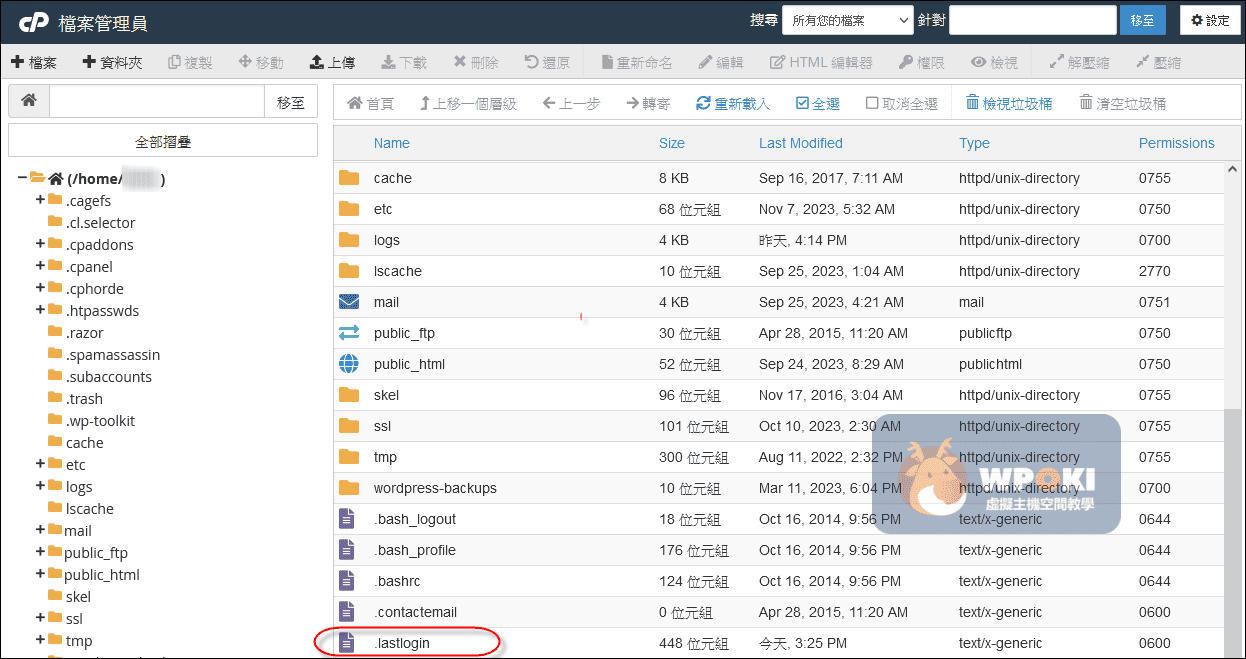 如果您懷疑 cPanel 帳號密碼可能外洩或被盜用,可以透過這個隱藏檔案來確認最近一次的登入 IP 與時間。這是一個快速的安全檢查方法。