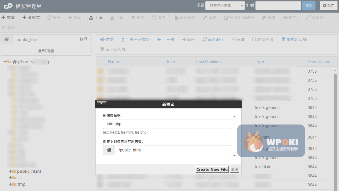 這裡以public_html來舉例→產生一個info.php的檔案。
